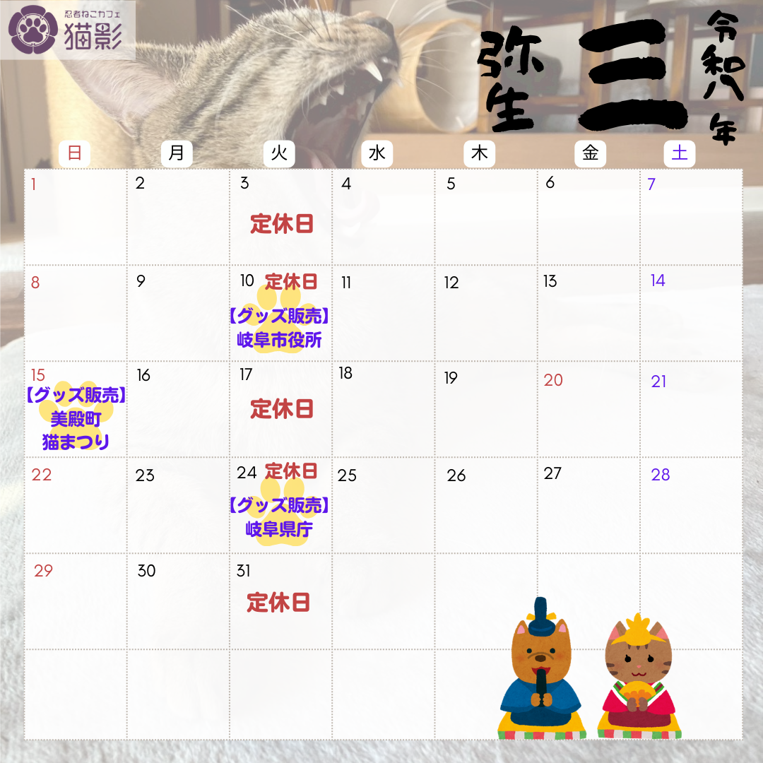 🐾忍者ねこカフェ 猫影 3周年の御礼🐾 おかげさまで、忍者ねこカフェ 猫影は、このたび3周年を迎えることができました。 日々足を運んでくださるお客さま、あたたかく見守り応援してくださる関係機関の皆さまのお力添えがあってこそ、今日まで歩みを続けることができたと、心より感謝申し上げます。 猫影は、忍者ねこたちが安心して過ごせる居場所であると同時に、人と猫がゆったりとした時間を共有できる場でありたいと願い、試行錯誤を重ねながら続けてまいりました。まだまだ至らぬ点も多くありますが、皆さまからのあたたかいお声や笑顔が、私たちの何よりの励みとなっています。 これからも、猫たちの幸せを大切にしながら、訪れる皆さまにとって心がほっとする場所であり続けられるよう努めてまいります。4年目の猫影も、どうぞ変わらぬご愛顧をよろしくお願いいたします。 |